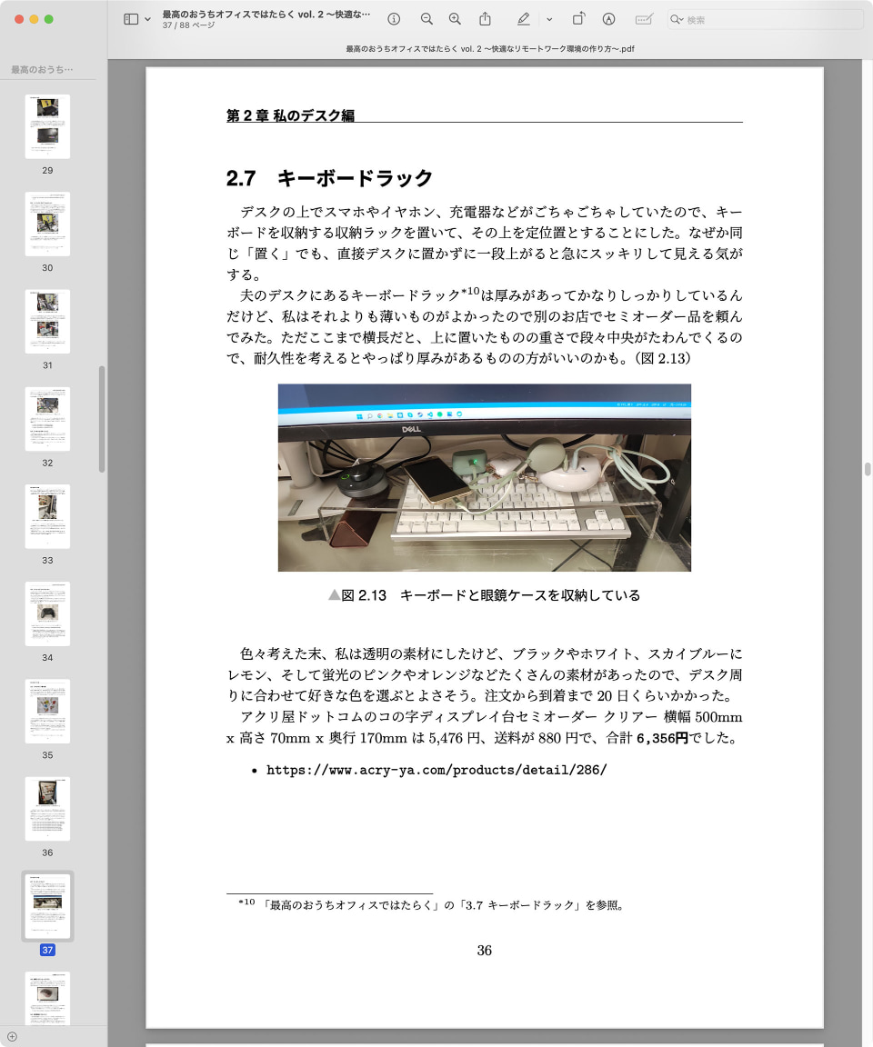 で、その本のvol.2の36ページに、キーボードを収納するラックをセミオーダーしたという話があった。記事中のリンクを開いてみると、専門店にていろいろなサイズの「コの字ディスプレイ台」をセミオーダーできるようだ。