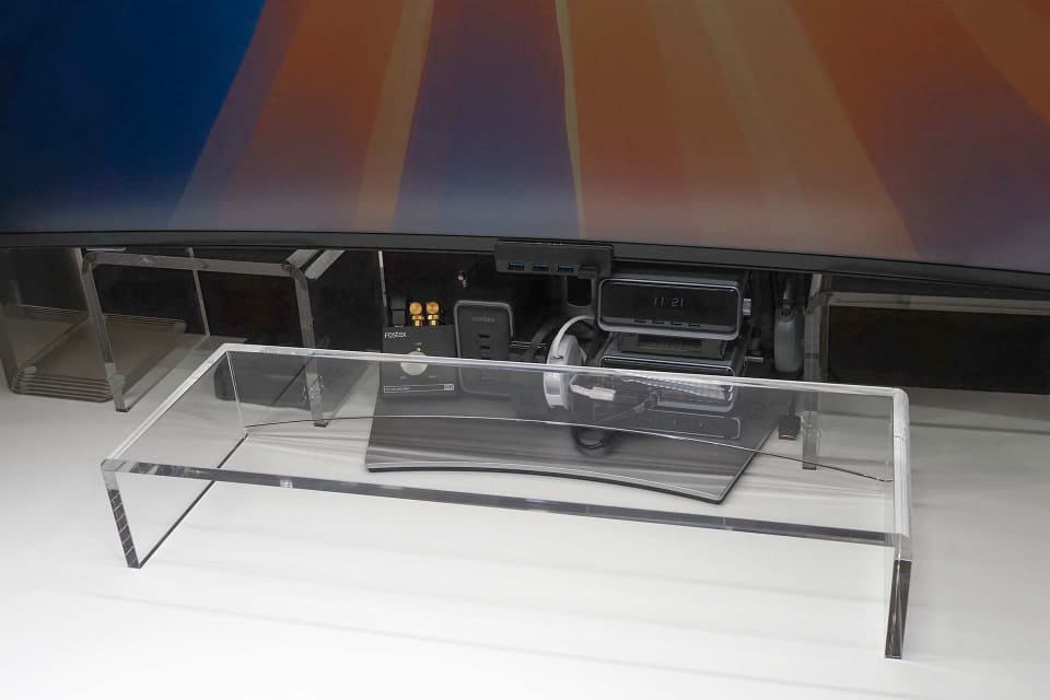 そのモヤモヤを一発で解消してくれたのがキーボードラックだ。キーボードラックの上面は平らなので、モノ置き場になる! キーボードをラックの下にスッと入れれば誤操作防止になる!