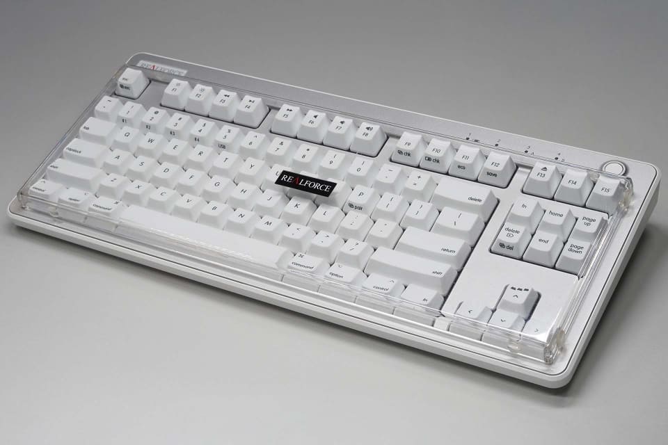 ひとつはキーの汚れ防止。ルーフを被せることで、夜間などキーボード不使用中にキートップにホコリが付着しなくなる。長年キーボードルーフを使って「そうか」とわかったコトだが、キートップ表面の汚れの大半は「キートップにたまったホコリが指先の油脂により固着したもの」だと理解した。俺の場合は手をよく洗うヤツだが、「仕事前に手を洗ってるのに、なんでキートップが汚れるの?」と長年疑問に思っていた。だが、後述の理由でキーボードカバーを使い始めたら、キートップが汚れることが激減したといいほどなくなったので、「なるほど!」と。