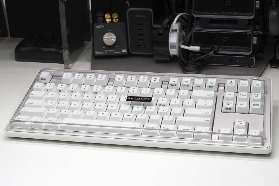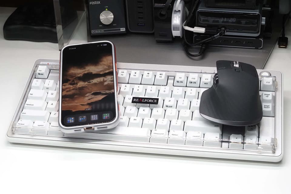 それはキーボードルーフの上面が10°前後傾いていること。この傾きにより「ちょっとマウスを置いておこう」「スマートフォンを乗せておこう」的なことをすると、ズズズズーッと滑り落ちてしまう。マグカップの類も微妙に不安定で置くのはリスキー。