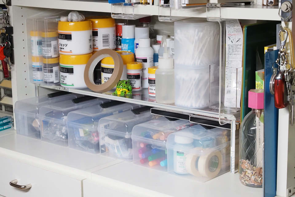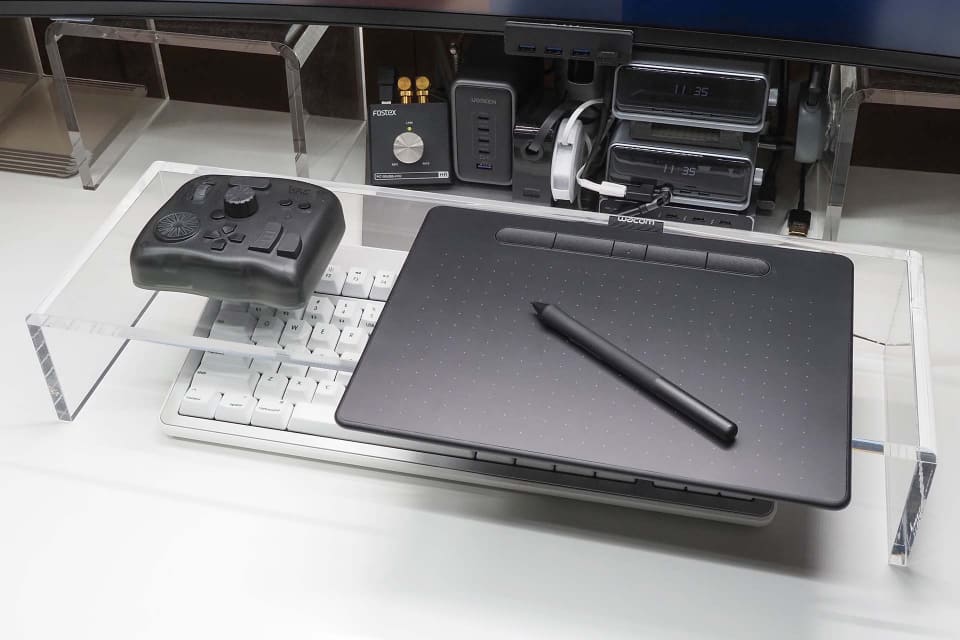 アナログお絵描き・工作をディスプレイの前でする人にも、キーボードラックは便利