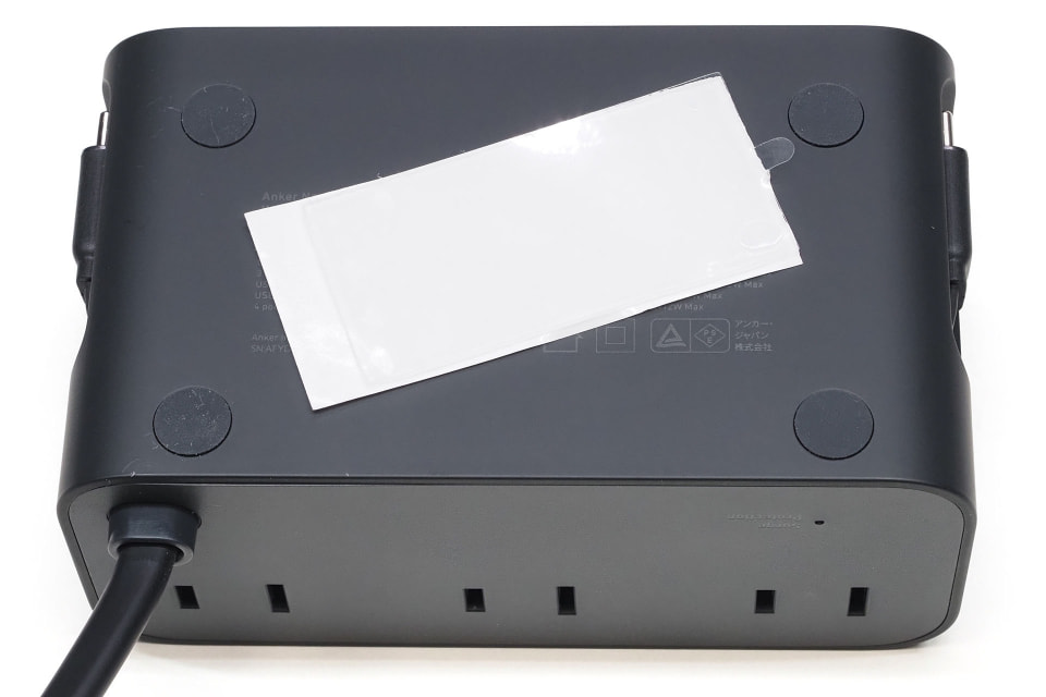 ただ、後述するが、Anker Nano Charging Stationは机上に置いた状態で巻き取り式USBケーブルを出し入れすると、本体が動いてしまうことが多い。だがこれは付属の強力両面テープで解消できる。