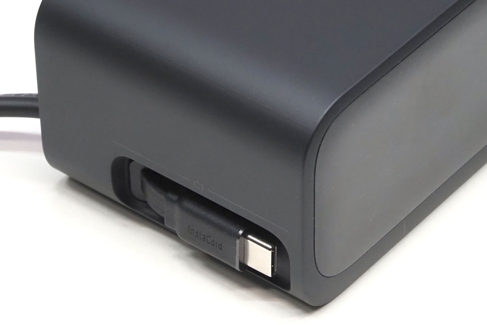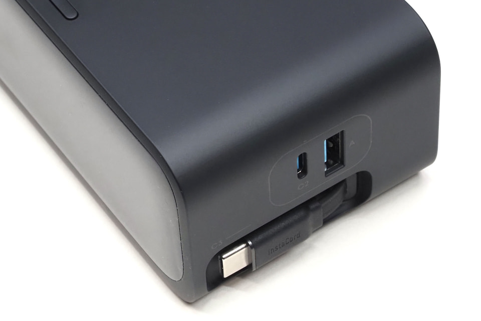 そして決定打は、巻き取り式USBケーブルが2本も内蔵されているという点。USB Type-C充電をするとき、ケーブルをUSB充電器につなぐとか、充電しないときにUSB Type-Cケーブルが横たわって邪魔&目障りとか、そーゆー微妙な「ぐぬぬ感」が一切ナイ!!!
