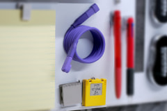 閑話休題。フックに引っかけられないモノは、そのモノ自体にマグネットシートを貼ってしまうのが手っ取り早い。薄いシート状のマグネットでも、薄いネオジムマグネットでも、吸着力がある程度強ければなんでもいい。ただ、厚いマグネットだとモノのツール性が損なわれがちなので、薄いほうが好都合だと思う。