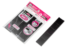 「落下抑制テープ 書棚用 GNシリーズ」の「GN-900」。多用するならこちらの長巻き品がオススメ。短い巻きの「GN-180」も幅は同じ。 3M「落下抑制テープ 書棚用 GNシリーズ」はゴムっぽい感触のポリエステルテープで、テープの厚みは0.3mm。アクリル系粘着剤で対象にしっかり貼れる。マグネット式フックのマグネット面にコレを貼ると、驚くほどズレにくくなり、マグネットが吸着する瞬間のショックもかなり和らぐ。 少々話が逸れるが、こういった粘着剤付きテープなどをナニカに貼る場合、そのナニカの表面をしっかり「脱脂」することが非常に大切だ。脱脂に使うケミカルはいろいろあるが、手軽はのは無水エタノール(100%エチルアルコール)などを使う方法。これを布やティッシュや化粧用のコットンにしみ込ませて対象を拭く。対象に無水エタノールなどを吹きかけて拭き取ってもいいが、要は対象表面の油分などを確実に落とすこと。そうしてから粘着剤付きテープなどを貼れば、まず剥がれることがないっていうか、剥がすのがたいへんなほどしっかりくっつく(平滑な面に限る)。