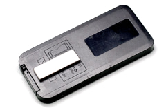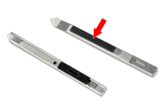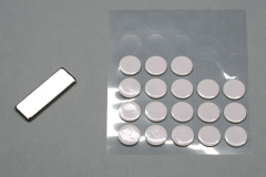 オススメは粘着剤付きの異方性マグネットシート。マグネットシートの磁石には「異方性磁石」と「等方性磁石」があり、異方性のほうが吸着力が強い=薄くても十分な吸着力を発揮できることが多いのでナニカと便利(だけど少々お高い)。写真は3mmのマグネットだが、これだと厚過ぎ。1mm以下がいいと思う。 カッターナイフの裏側に薄い異方性マグネットシート(粘着剤付き)を貼った。これでホワイトボードなどに吸着する。なるべく広い面積にして貼ると、吸着力もズレにくさも増す。厚いシートを貼るとカッターの使い勝手が悪くなるので、薄いほうがいい。 薄くて小さいネオジム磁石と、それを対象に貼るための「魔法のテープ」の類。「魔法のテープ」とは近年流行りのアクリル素材のジェル粘着剤で、強力な粘着力がありつつも、対象から粘着剤を除去しやすい。 リモコンの裏に薄くて小さいネオジム磁石を貼った様子。アクリル素材のジェル粘着剤の粘着力は、小さめ薄めのネオジム磁石のスチールに対する吸着力を上回ったりするので、この貼り付け方でも「磁石が外れる」などの問題が起きにくい。 ただし、これらも「貼る前に絶対に脱脂!」を。脱脂しないと異方性マグネットシートなんざぁ剥がれまくりで、ネオジム磁石もスチール面にもっていかれたりする。脱脂、大事!