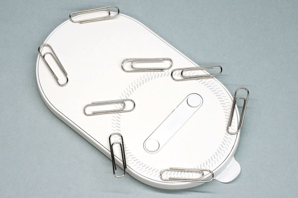 使用開始後、しばらくして気付いたことがある。「ESR MagMouse」がマグネットベースに対してスゲく小気味よく、かつ、強力に吸着するので「もしかして?」と思って試したら……マウス側にもマグネットベース側にも、かなり緻密にマグネットが配置されていた。