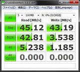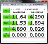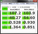 このカードリーダーを使って、SanDiskの「エクストリーム SDHC UHS-I カード 32GB」および「エクストリーム プロ SDHC UHS-I カード 32GB」のベンチマークテストを行った。カードリーダーは前述の内蔵マルチカードリーダー上のUSB3.0ポートに接続した。ので、PCには玄人志向の「USB3.0F-P7-PCIe」経由で接続したことになる。