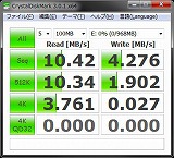 | やや古いSanDisk製1GB SDメモリカード。USB2.0でもUSB3.0でも似たような結果となった。ただし極端に遅いというわけでもない。平凡。フツーと言えよう | ||