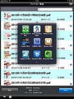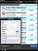 | 表示した様子。アプリ内に保存されたファイル(PDFなど)は、ほかのアプリで開くこともできる | ||