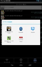 | こちらは「ScanSnap Connect Application」アプリをAndroid端末のNexus 7で使っているところ。アプリの機能は、iOS版とAndroid版でほとんど差がない。ただ、スキャンしたファイルを指定のフォルダに保存でき、PCと似た感覚でファイルを扱える点に、Android端末ならではの活用幅を感じる | ||