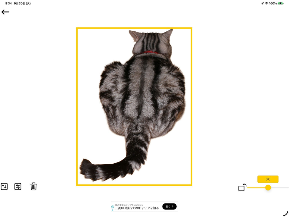 といった感じでトレーシングマットアプリを使える。何度か使ったが、ヒッジョーに便利。前述のアクセスガイド機能を使いiPadをトレースボードとするより1024倍くらい実用的なので、画像を紙にトレースしたい人にはこのアプリがオススメ。