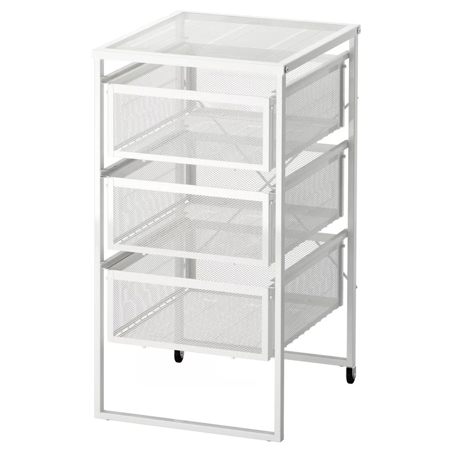 イイ感じに使えたので勢い余って追加で2台も追加購入したのは、IKEAの引き出しユニット「LENNART(レッナールト)」。直販価格1999円のミョーに安いスチールメッシュ引き出しだ。