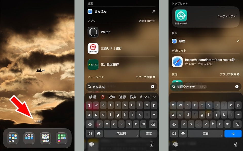 そうだ、そうそう、2010年には禁煙していたんだった。続いて再度検索画面を見てみると、メモアプリに禁煙の記録があることが判明。なーんだホーム画面の検索やっぱりiPhone内を探せるってことじゃん~、てか便利だニャこれ、暇つぶしにはとくに。