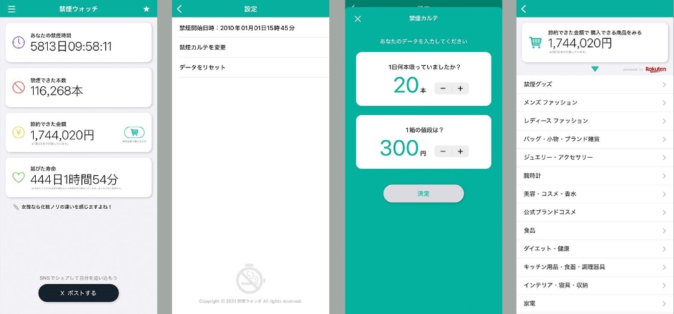 でも、禁煙した人は「禁煙ウォッチ」アプリ使うとオモシロいっすよ♪ 「マジでこの本数のタバコ吸わずに済んでるのか」、「こんなに節約になるのか」みたいなことが可視化されて興味深いのだ。