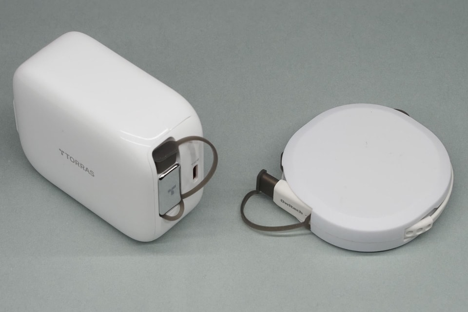 巻き取り式ケーブルの長さは65cm、手のひらサイズのUSB充電器で最大出力は45W