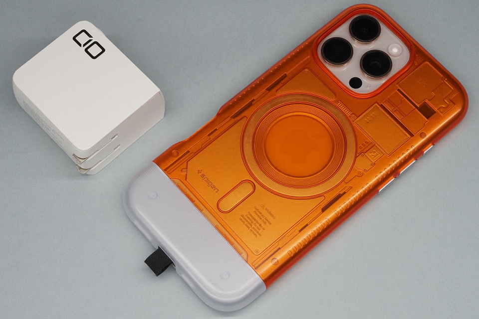 またこの機構、つくりがヒッジョーにイイ! USB Type-Cコネクター格納部近くにはマグネットが埋め込まれていて、フタは開くと本体のマグネットに吸着して安定し、フタを閉じてもやはりマグネットで吸着されるようで不意に開いたりしない。非常に小気味よく使える「凝ったフタ」なのだ。