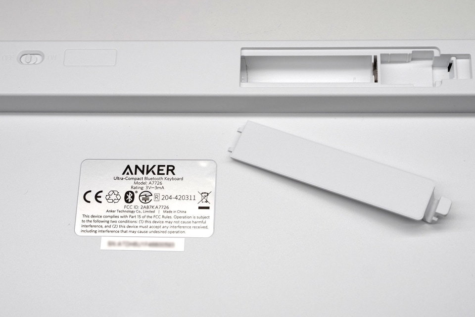 ちなみにこのキーボード、重さ約190gで、大きさは約284×122×18.5mm。軽くて携帯に便利。電源スイッチはスライド式で、単4形電池×2本で使える単純明快さがイイ。あと安価なので雑に扱っちゃえるのも実用的である。