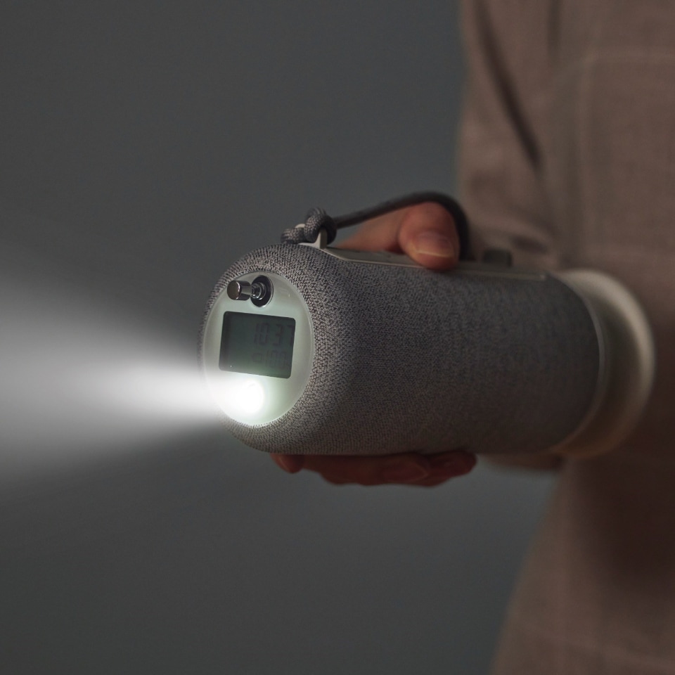それからCRANKSPEAKERはライトとしても使える。ライトは2種類を内蔵し、スポットライトとソフトライトだ。なお、満充電からのバッテリー持続時間は、ラジオが約44時間、スポットライト(弱)が約50時間、ソフトライト(弱)が約266時間となっている。