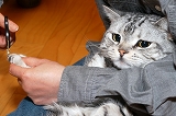 とろ様、シャキーン!! そしてイヤ~ン!!2010年3月11日 06:00 拙宅猫とろ様は、いつでもどこでも爪を研ぐ猫ゆえ、爪はいつもシャキーン!! と鋭い。が、容易に爪を切らせる猫でありかつ肩には乗らない猫ゆえノープロブレムと言えよう。 でも、爪を切られるとき、切なそうな表情をしている。(1)シャキーン!!(2)切りますよ(3)イヤ~ン!! みたいな