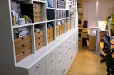 | 再構築前の猫走り。棚の中段には小物が置いてあるほか、左橋の黒い書類ケースのため、猫が完全に通過することができなかった | この奥にある黒い書類ケースが出っぱってて邪魔ニャ。ここでUターンか、ここから飛び降りるしかなくてつまらないニャ。的な | そこで書類ケースを除去!! 中段にあった小物も除去!! 猫が堂々と通れるスペースを作ったのであり完全なる猫走りと言えよう!! |