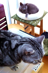 | 仕事場の机は強度もあるので隠れるのにいいかも。ただ、下側にいろいろあり、隠れにくい状態。整理しなくちゃなぁ、と思った | 地震などで避難することになったら、猫、どうしよう!? ケージに入れて外に行くしかないですな。猫の食料なども考えないと…… |