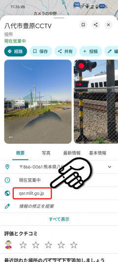 しかしGoogle マップで「ライブカメラ」と検索すれば、もっと簡単にライブカメラを見つけることが可能だ。地図上のライブカメラのある位置にアイコン表示されるので、タップして詳細画面を表示し、ホームページURLを選べばOK。そのライブカメラの映像を配信しているページが開き、リアルタイムの状況をすぐに把握できる。