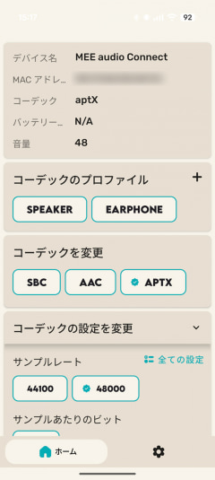 名前に「Codec Changer」とある通り、それらの機器が対応しているSBCやAAC、aptXといったBluetoothオーディオのコーデックを自在に切り替えて、ユーザーの好みや用途に応じた適切な音質で聞けるようにする、というのがメインだ。