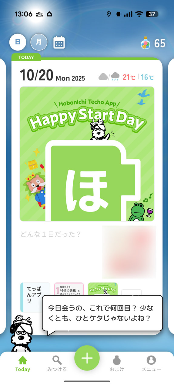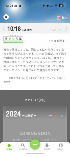 紙のほぼ日手帳と共通するところはあまり多くないように感じるが、1日に1つ、著名人らによる「日々の言葉」が表示されるのは、ほぼ日手帳らしい部分と言えそう。今後は1年前や2年前の記録を振り返る機能などの追加も予定されており、長く使うほどに手放せないアプリになりそうだ。