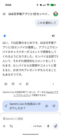 グーグルのGeminiアプリは「これを要約して」や「これをカレンダー登録して」だけでOK! AIチャットのライブ会話と画面共有をもっと活用しよう