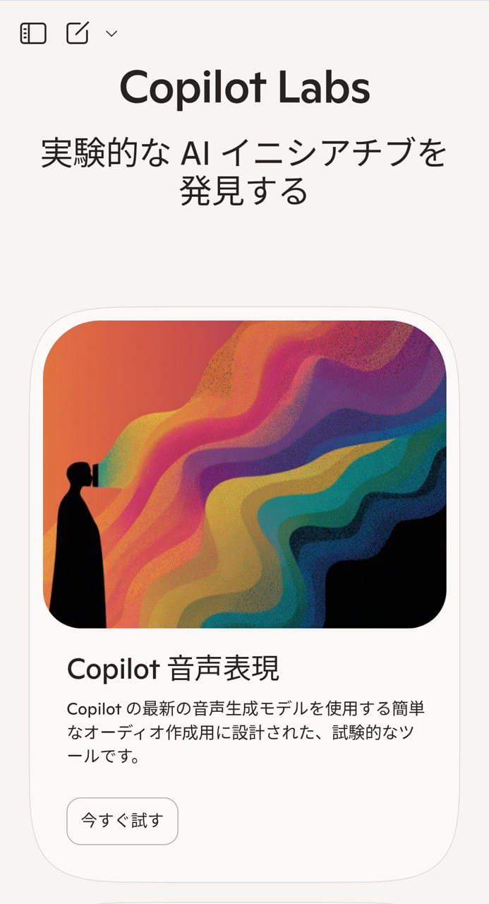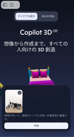 「Copilot Labs」は、MicrosoftのAIアシスタントであるCopilotの技術を応用した新しい機能を試せるWebサイト。正式リリース前の実験的なツールがいくつか公開されており、そのなかでも今すぐ使えて実用にもなりそうなのが、「Copilot 3D」と「Copilot 音声表現」だ。
