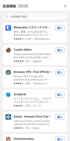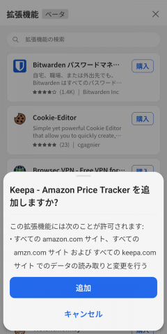 パソコン版のEdgeでは、エンジンが同じChromeの拡張機能がそのまま使える仕組みだが、現在のスマホアプリではそのなかの一部のみが対応しているようだ。それでも、パスワードマネージャーのBitwardenや、Amazonの価格履歴を追跡できるKeepaなど、著名なサービスの拡張機能もいくつか利用可能だ。