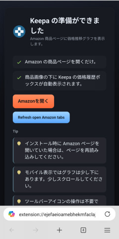 スマホの「Edge」でも拡張機能が利用可能に、価格トラッカーのKeepaが普通に使える