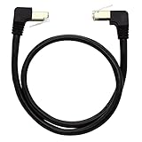 今回紹介するのは、これらと同じ発想で作られた、コネクターが90度折れ曲がったLANケーブルだ。これをRJ45ポートに挿すと、通常ならばまっすぐ伸びるケーブルが、上または下方向に延びる形になる。これならば、ルーターやハブの背面に挿したケーブルを、無理なく手前に引き出せるというわけだ。