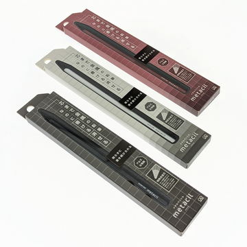 実際にメタシルを手に持ってみて感じるのはその重量だ。木軸&黒鉛の一般的鉛筆が6グラム前後なのに対してメタシルは実測で21g前後あり、金属の冷たさがありなかなか新鮮だ。重さ的にはFrixionの3色ボールペンよりまだ少し重いが筆記時の安定感とバランスは良好だ。芯が折れず鉛筆削りも不要なのでメモと一緒に持ち歩いてモバイル環境でも安心して活用出来る。