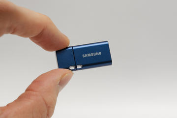 最後はサムスン製の「USBメモリ Type-C」。400MB/s超の読み込み速度をマークする高速なUSBメモリーとなっている。外取材のときはフォトグラファーの方と一緒に仕事することがあって、その場で写真をやり取りすることも頻繁だ。最近はみなさんType-Cポートを搭載するノートパソコンをお持ちで、Type-C専用のUSBメモリーでも「使えない」なんてことはなくなった。だいたいは高速にデータ転送できるThunderbolt 4ポートだったりするので、小さいながらも大容量の写真データの受け渡しにストレスがなく、いいことだらけだ。