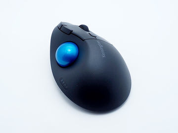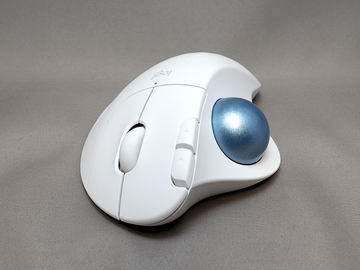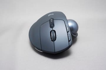 まず、市民権を得つつあるとはいえまだまだマイナーなデバイスであるトラックボールについて、簡単に説明したい。マウスと同じポインティングデバイスの一種で、大きな特徴は本体に大きなボールが備えられていること。このボールを親指や人差し指で動かすことで、本体を動かすことなくポインターを操作できる。一般的なマウスに比べ移動距離が少ないため身体に負担が少なく、また机上のスペースを節約できる。MX Ergo Sは親指でボールを操作して、人差し指や中指でクリック・ホイールの操作を行うことになる。