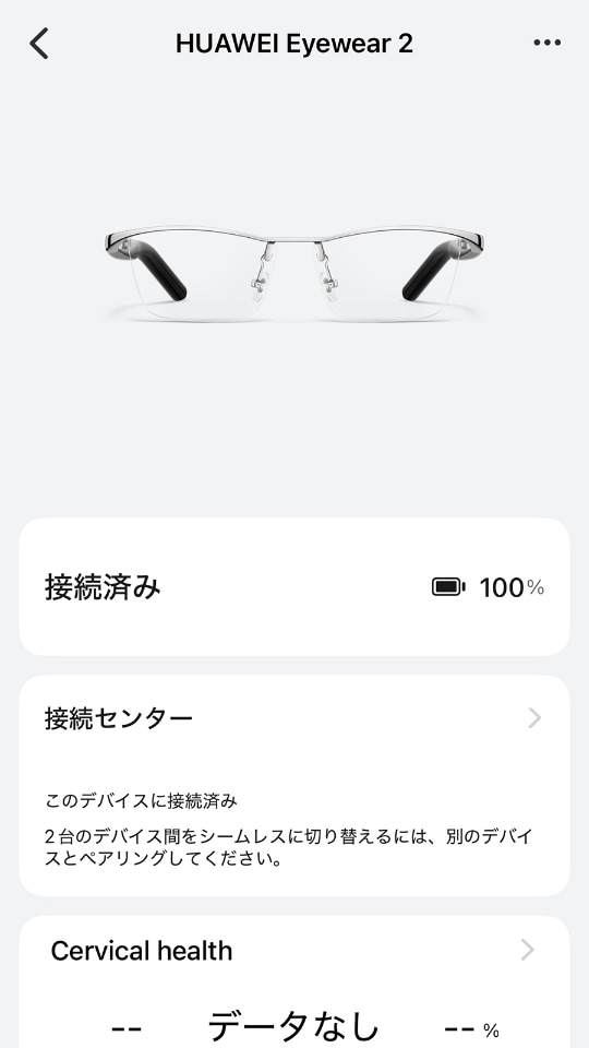 念のため基本情報を押さえておくと、HUAWEIの「Eyewear 2」はスマートフォンなどとBluetoothで接続し、音声コンテンツを聴取できるメガネ型デバイスです。マイクも搭載されており通話も可能。今風のBluetooth接続マイク付きイヤホンと同じ機能を備えていると言って良いでしょう。もちろん、レンズを交換すれば通常のメガネとして使用できます。