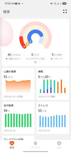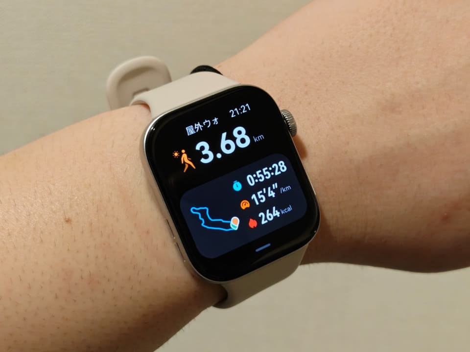 近年のスマートウォッチとして、標準的なヘルスケア機能を、まんべんなく搭載していると言えるでしょう。ワークアウトモードも、100種類以上に対応しており、基本面での不満はほぼありません。