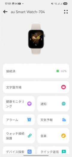 そのほか、通知の確認や再生メディアのコントロール、スマホを探す機能などが利用可能。Androidスマートフォンと接続すれば、音楽保存、SMSのクイック返信も利用できます。auのオリジナルスマートウォッチというだけに、今後はau PAYアプリのバーコード表示などにも対応してほしいと感じています。