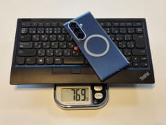 「Galaxy Z Fold7」本体の重さは215g。純正片面クリアケース込みで約250gと、「Galaxy Z Fold4」より明らかに軽量だ。最近はノートパソコンを持ち歩く機会が減り、スマホでほとんどの作業を済ませてしまう筆者にとって、この重量感は魅力的である。