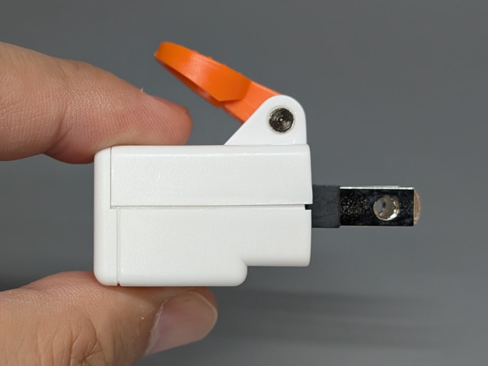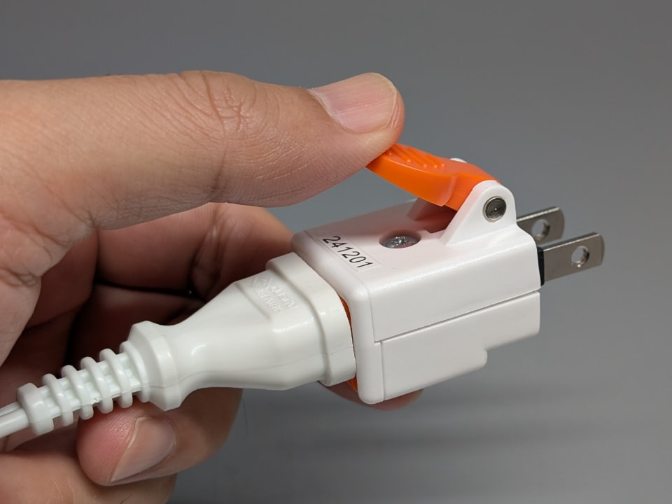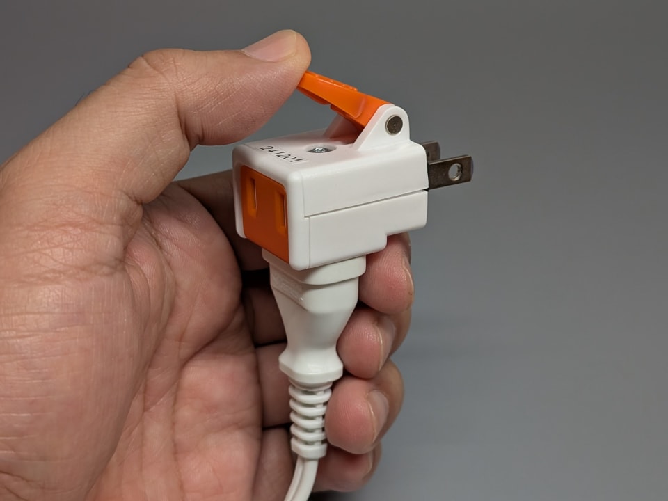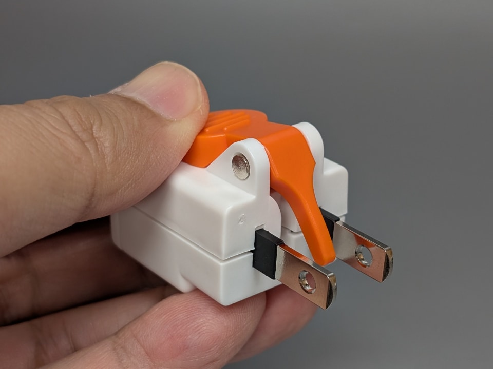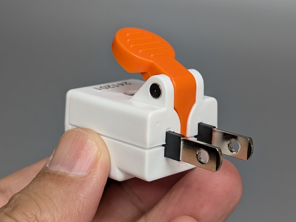 水平垂直どちらにも挿せる、ワンプッシュで電源プラグが抜けるアダプター