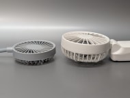 ファンの回転音が静かなのもメリットだ。薄型ファンゆえ風量はあまり強くなく、3段階の「2」で通常のハンディファンの「弱」くらいなのだが、周りの人が振り返るような騒音を発生させないため、電車の中などでも比較的気兼ねなく使える。
