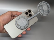また重さも実測90gと軽量なほか、薄型ゆえ収納性も高いので、荷物がかさばるのが苦手でハンディファンの持ち歩きを避けている人にも向く。ネックがあるとすればMagSafeアクセサリが同時に使えないことくらいだろうか。