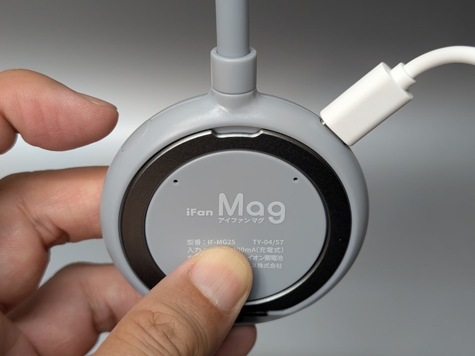 そんなハンディファンの亜流と言えるのが、今回紹介する「iFan Mag」だ。これはMagSafeに対応し、iPhoneに背面に磁力で吸着させられるユニークなハンディファンだ。