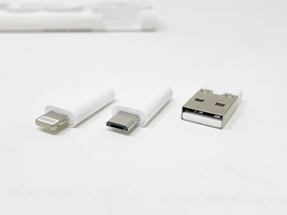 これらのアダプタで、ほぼすべての端子に対応した充電やデータ接続が可能です。なお、Lightning端子への変換アダプタが付属していますが、MFi認証は受けていないようです。