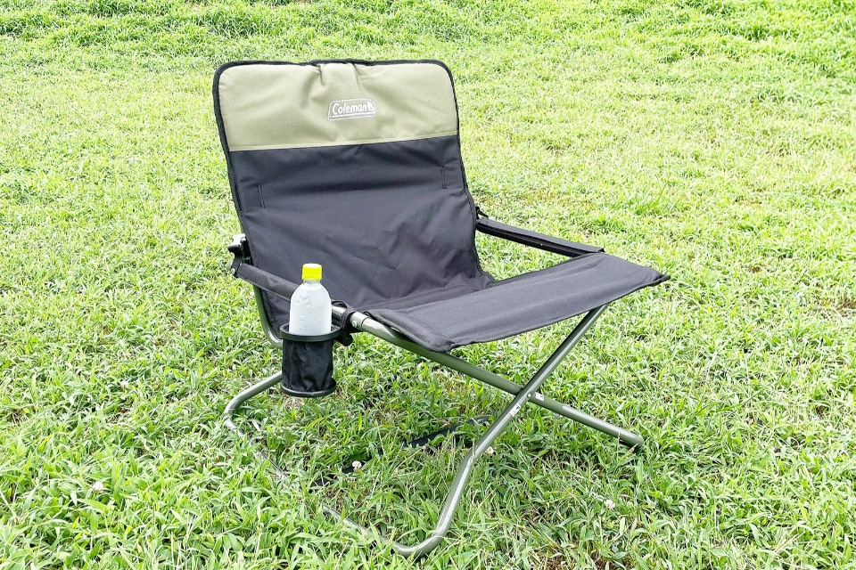 結果、家族にもわりと好評で、家でも使うようになったので、ご紹介したいのがコールマンの「クロスロッカーチェア」。いわゆる折りたたみ型の、底面がゆるやかなカーブを描くロッキングチェアです。座面が通常の椅子の1.5倍ほど広く、ゆったりとした座り心地が特徴です。