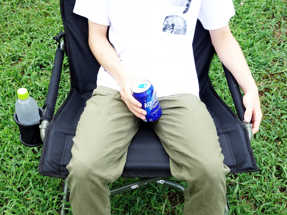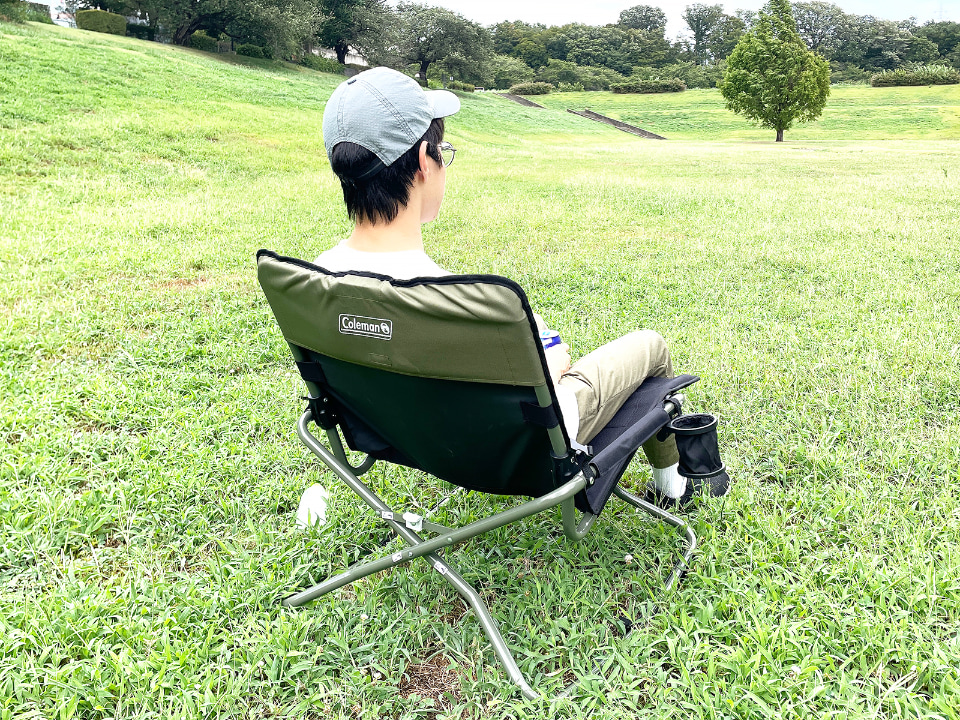 しかし、本製品は広い座面にあぐらをかいたり足を折りたたんだりしても快適に座れ、ロッキングチェアなので背もたれに体重を預けると、リラックスしながらゆらゆらと揺れることができます。アウトドアでも室内でも、何となく座ってぼんやり過ごすには最適です。