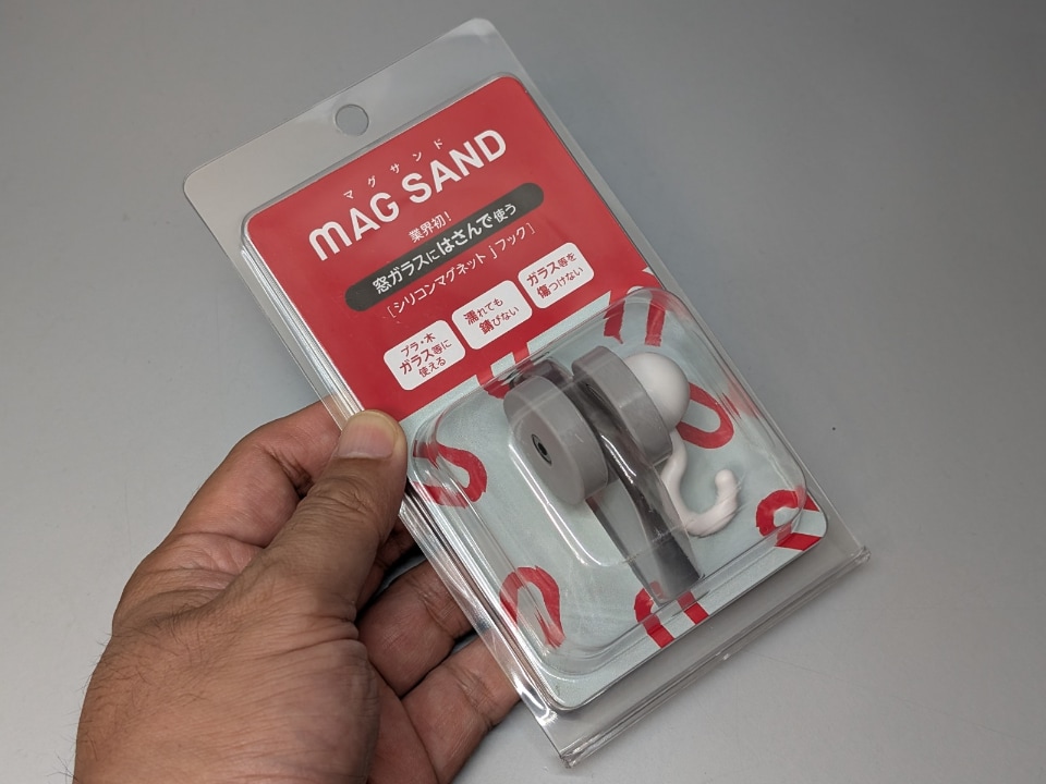 粘着テープ不要、窓ガラスに取り付けられるフック「MAG SAND」