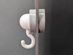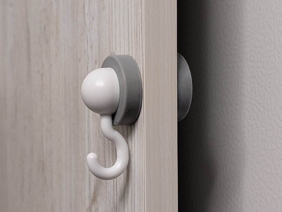 本製品はモノを引っ掛けるフック部と、対になる台座部で構成されている。これらは強力なネオジム磁石を内蔵しており、壁などの表裏から挟んで固定できる。これにより、壁面に穴を開けたり、粘着シールの跡を残すことなく、フックを取り付けられるというわけだ。メーカーでは「窓ガラスに挟んで使う」という用途を大きく訴求している。